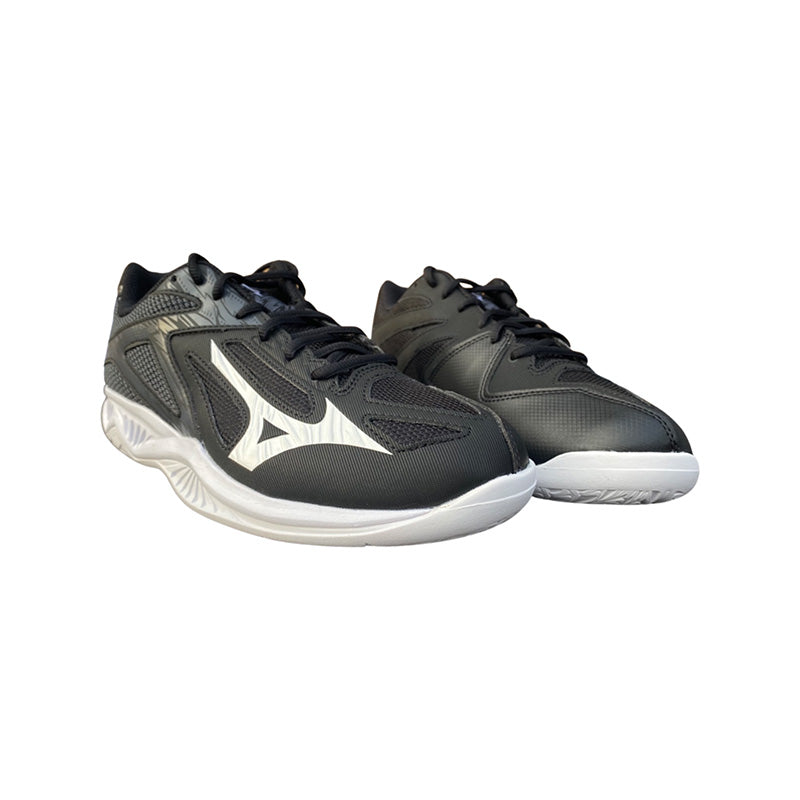 Experience peak performance with the Thunder Blade 3 - Black / White / Ebony. Boasting a lightweight and comfortable design, this shoe combines a wide outrigger sole for stability and rearfoot cushioning holes for added softness. With a weight of only 300g and a stylish black metallic gray color, this shoe provides the perfect balance of support and comfort for any match. The durable Air Mesh upper and midfoot reinforcement also offer extra stability for a truly superior playing experience.